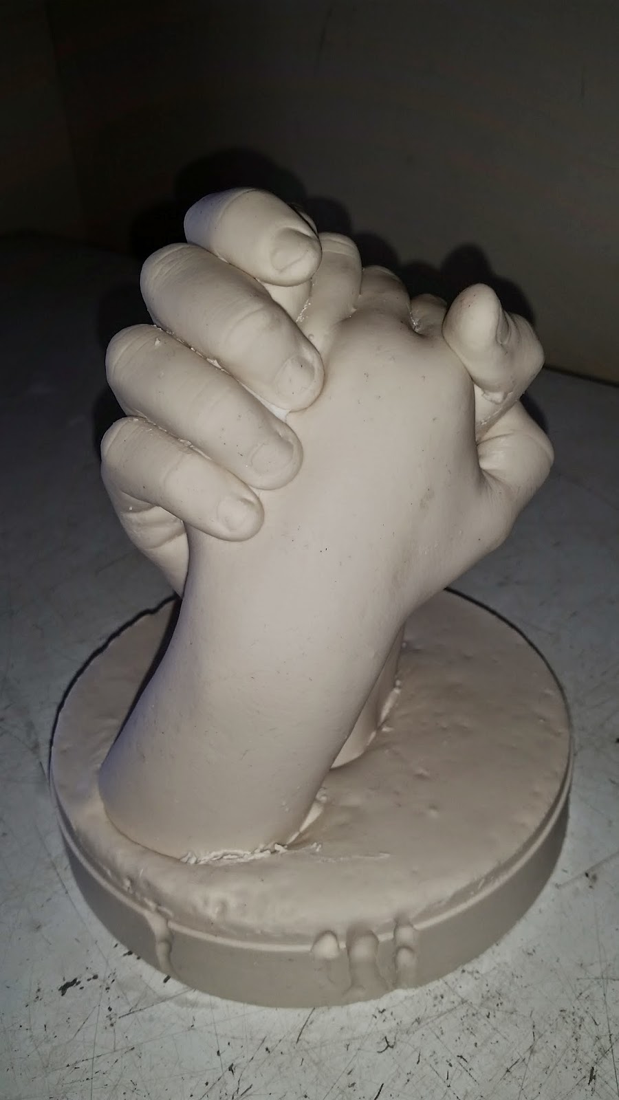 After school we took the mould out and started to break away the rubber mould to find the clay hands inside....