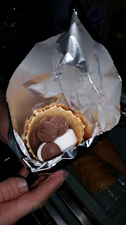 It was then time to make Waffle-smores..... (waffle cones with marshmallows & chocolate melts)